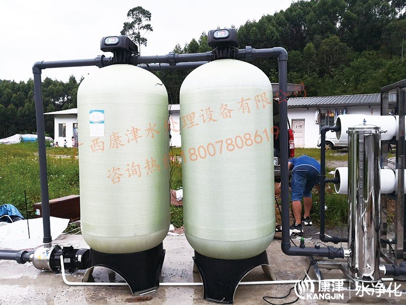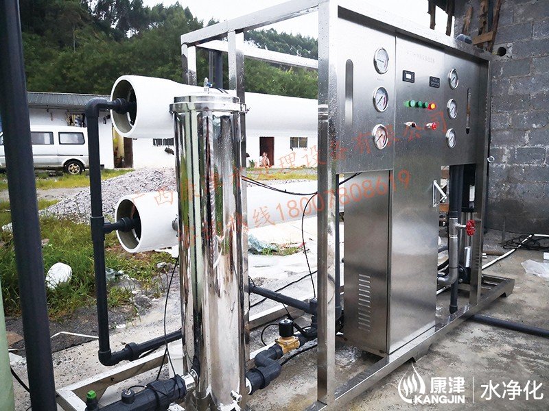 工藝流程:山泉水-原水箱-原水泵-石英砂過濾器-活性炭過濾器-阻垢劑加藥裝置-保安過濾器-高壓泵-反滲透裝置-用水點