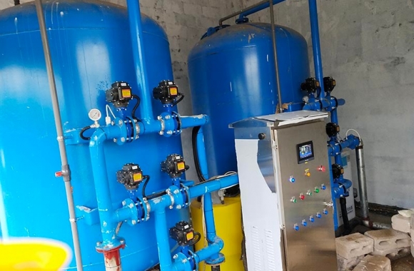 工藝流程:地下水-絮凝加藥-石英砂過濾器-二級過濾-二氧化氯加藥器-凈水箱-生活用水